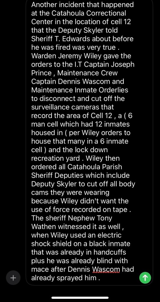While this Tale of horror was based on two of the former deputy’s statements about the incident, a former employee at the prison confirmed the incident as follows by text message just a few days ago. This whistleblower stated that:
